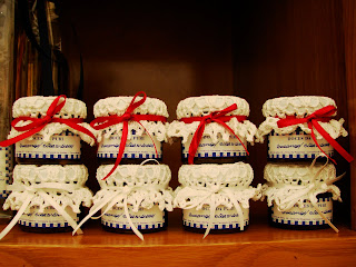 Estamos, também, a preparar, para um evento, uma encomenda de compotas miniaturas com "chapeuzinhos" em tricot; ou seja produto e embalagem totalmente artesanais e que são nossa identidade cultural.